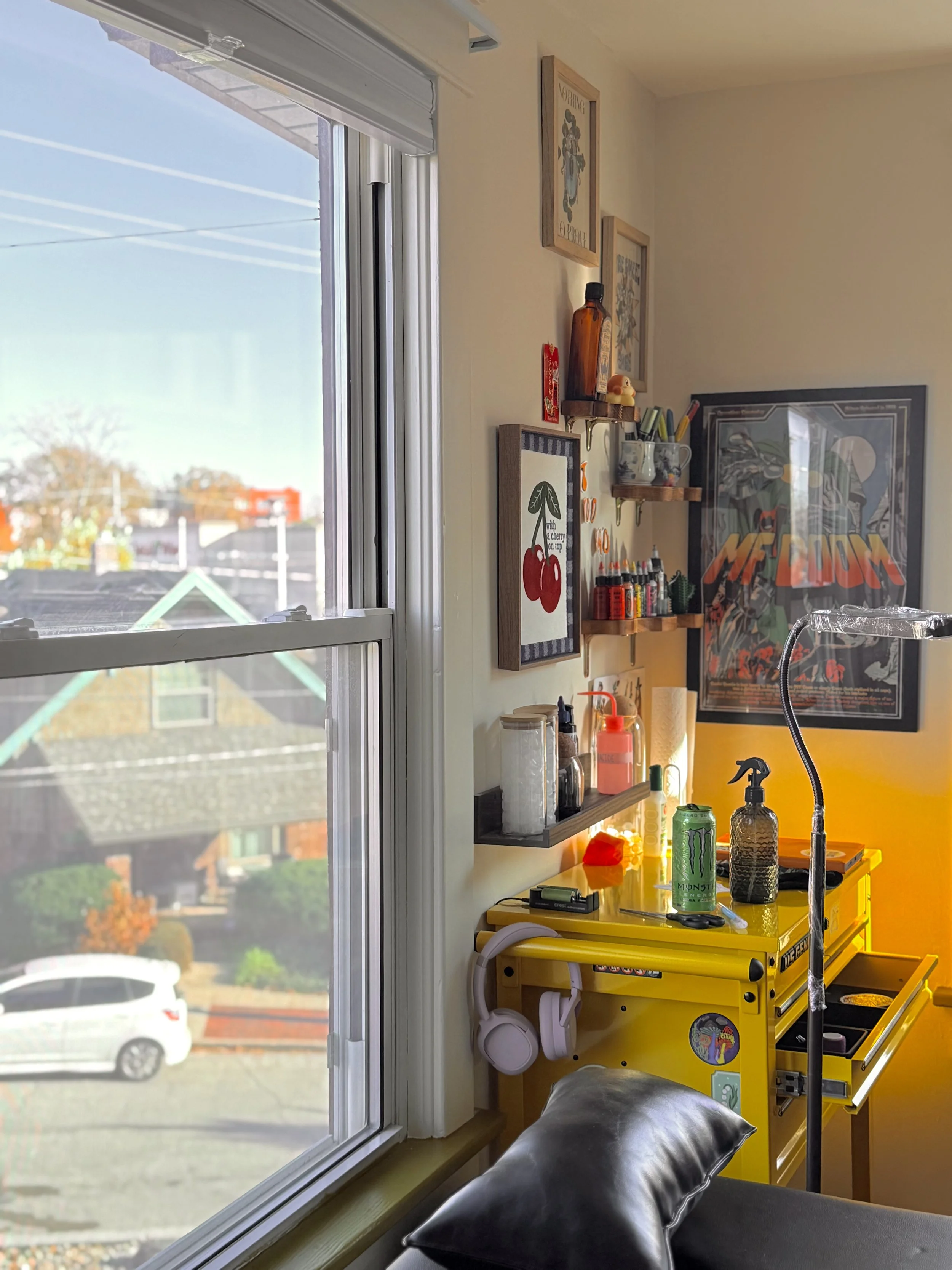 You can find us nestled between Main Street and Broadway Boulevard. Not only will you be able to experience art through our tattoos, you’ll also be able to get a peak into Kansas City’s classic and historical homes. Ours was built in 1912, cool right? Keep scrolling for a sneak peak into our beautifully crafted studio.