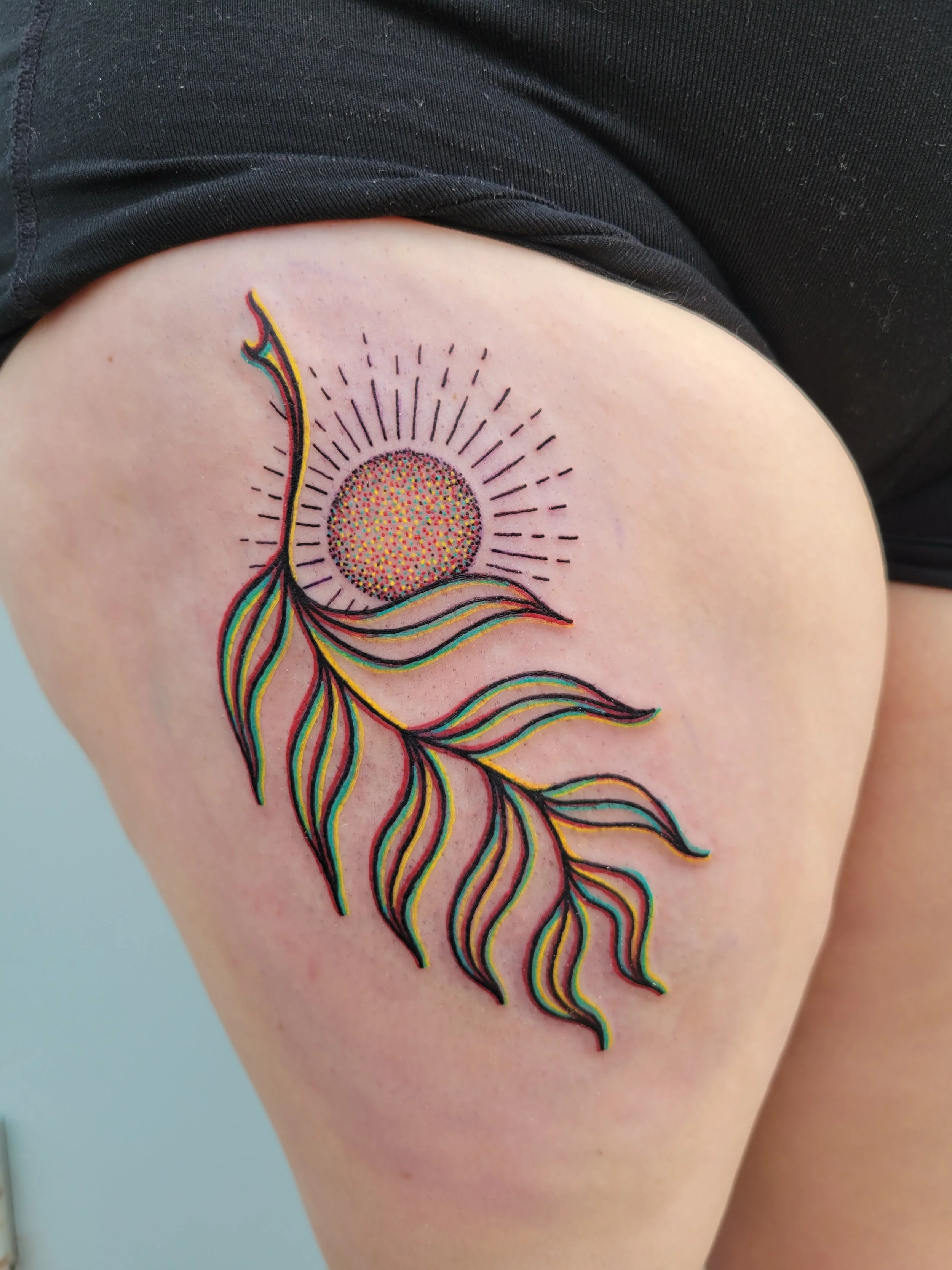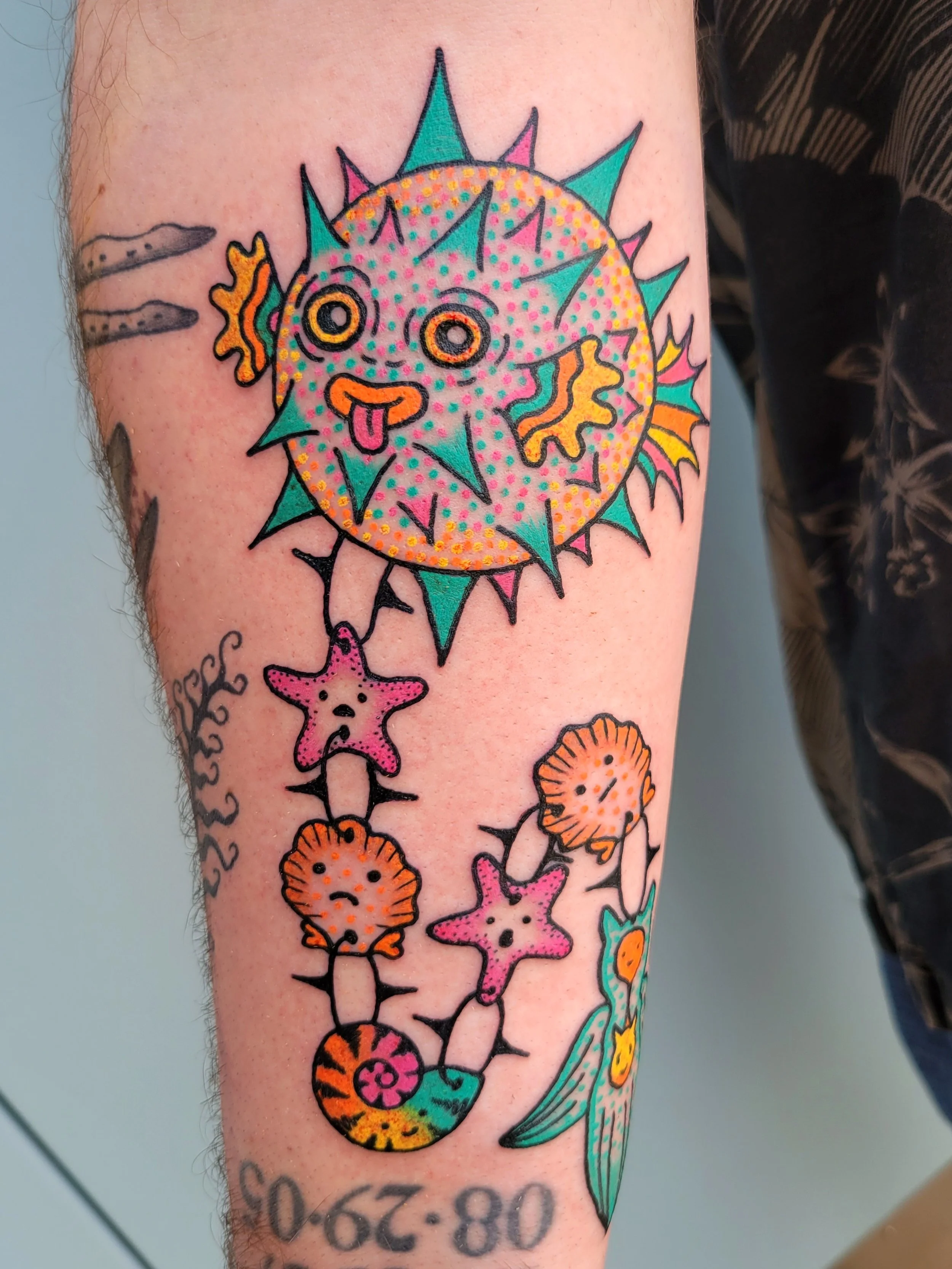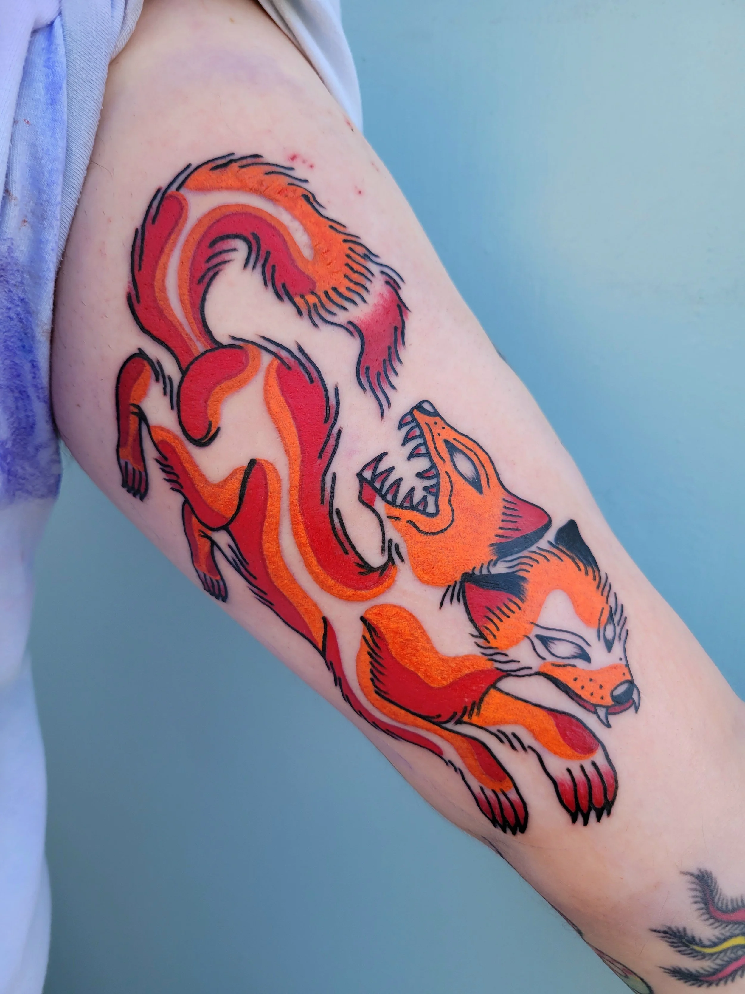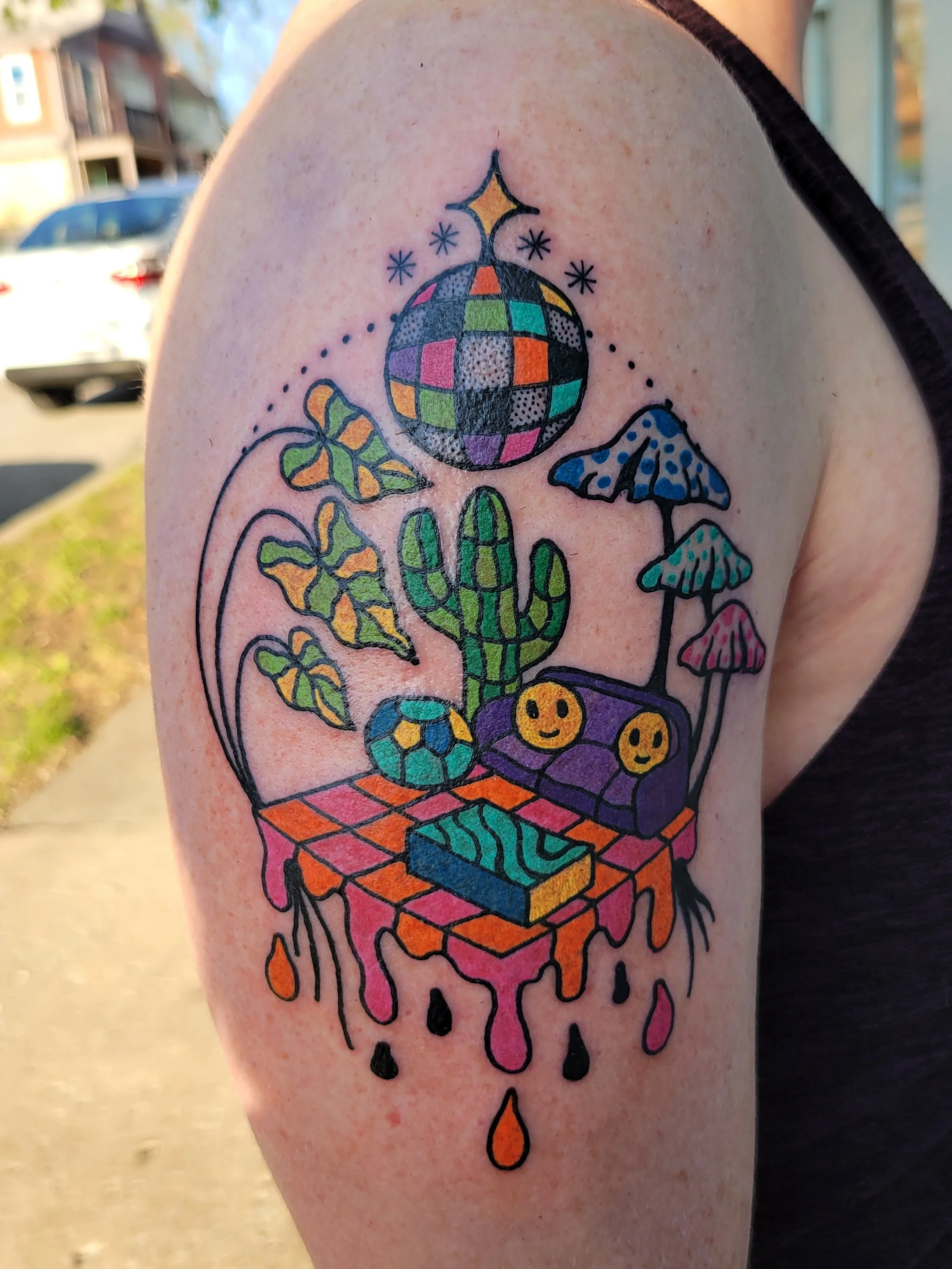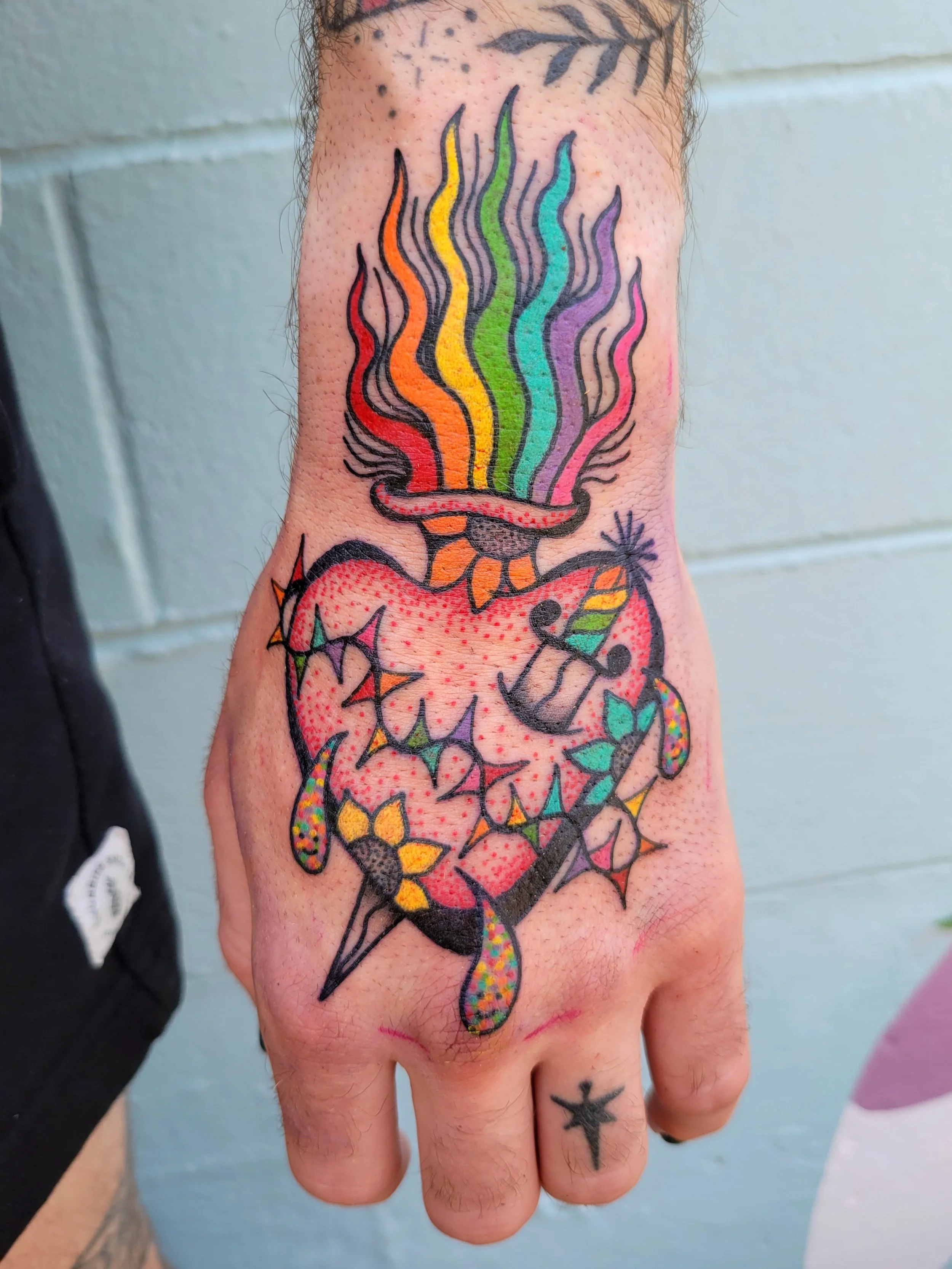 Cat grew up in North KCMO and have been tattooing since 2018. They love a variety of styles by are mostly focused on trippy, colorful imagery and heavy or fine-line blackwork. When they’re not tattooing you can find them traveling or playing magic the gathering with their partner.