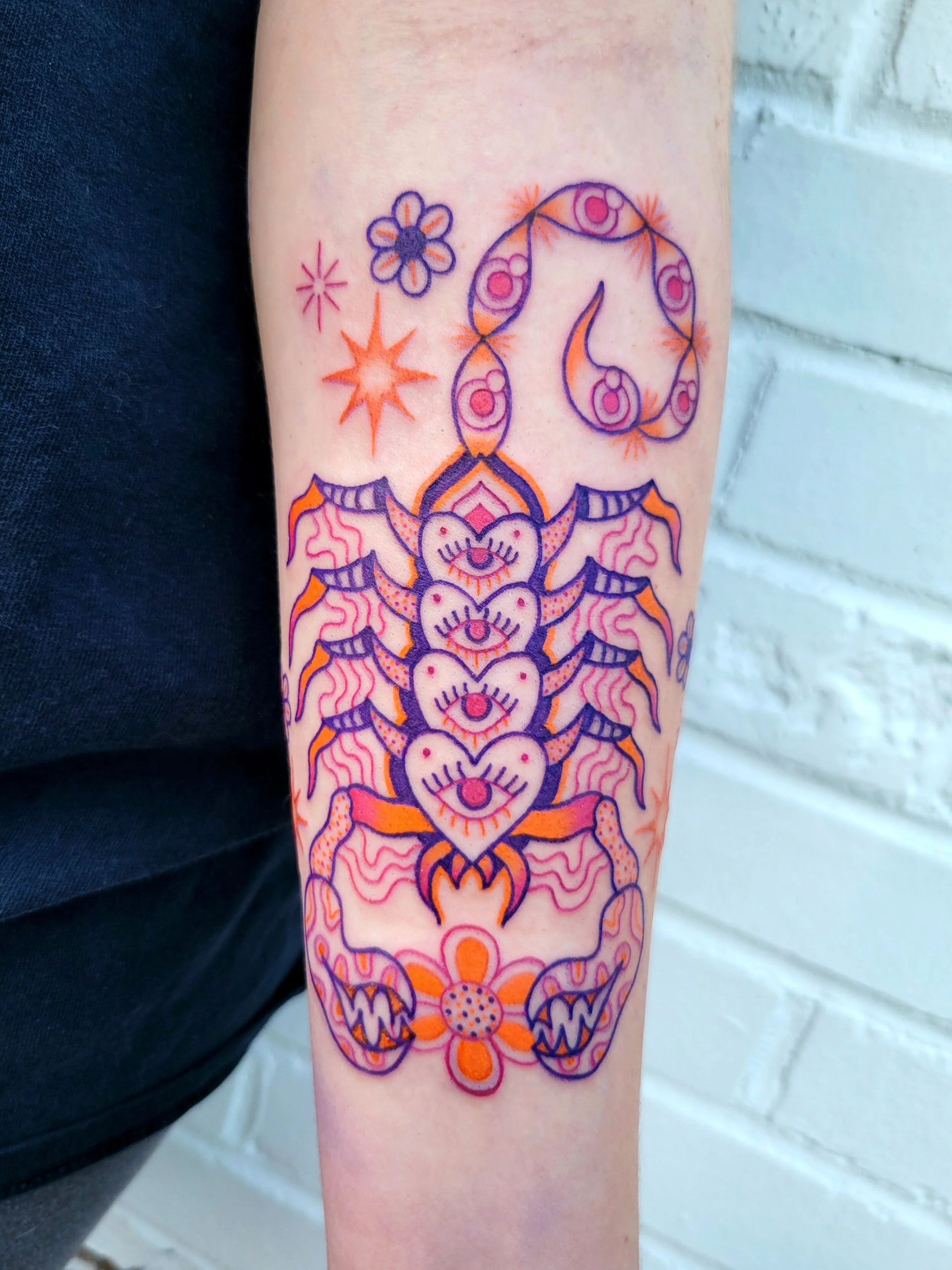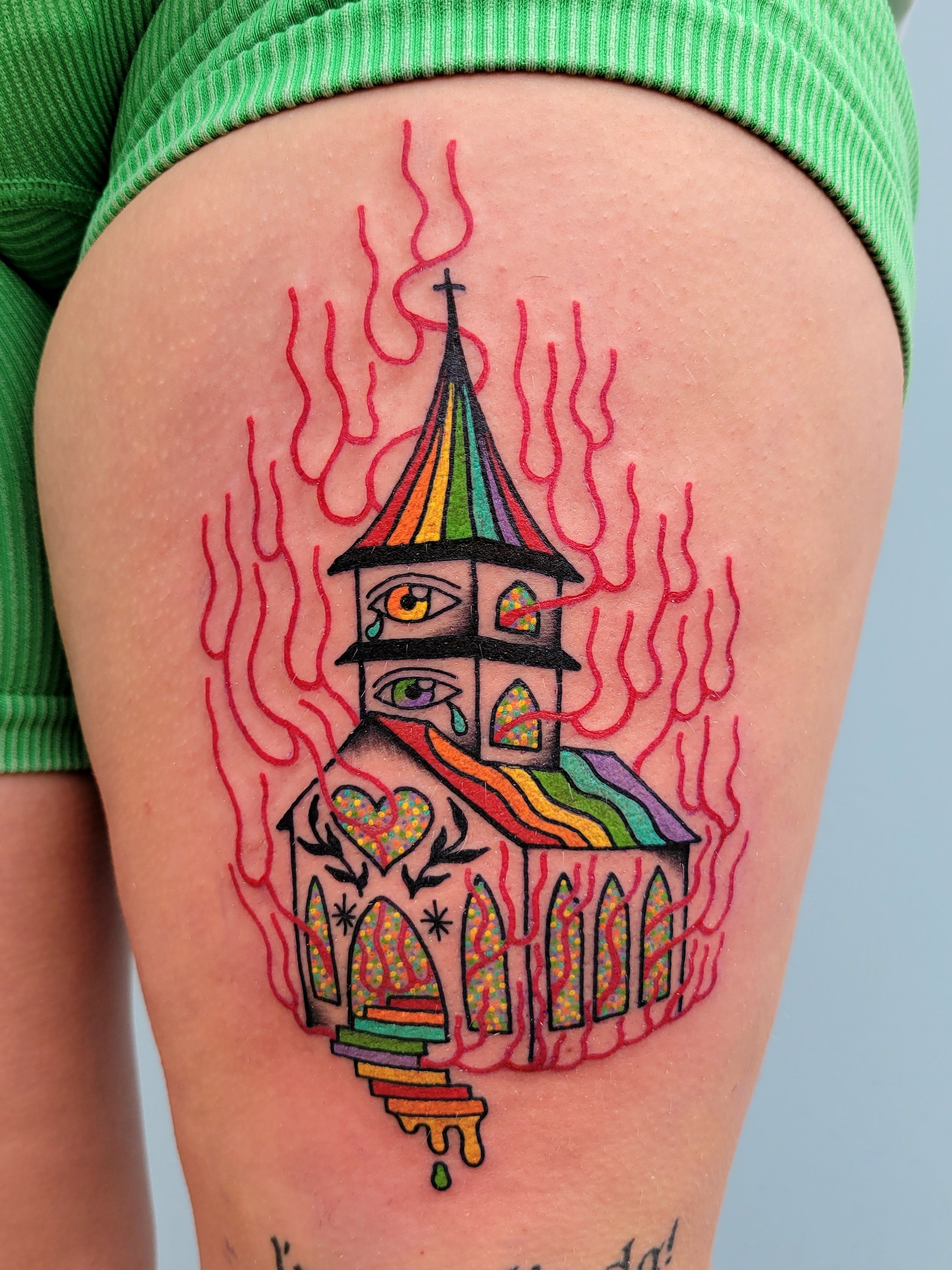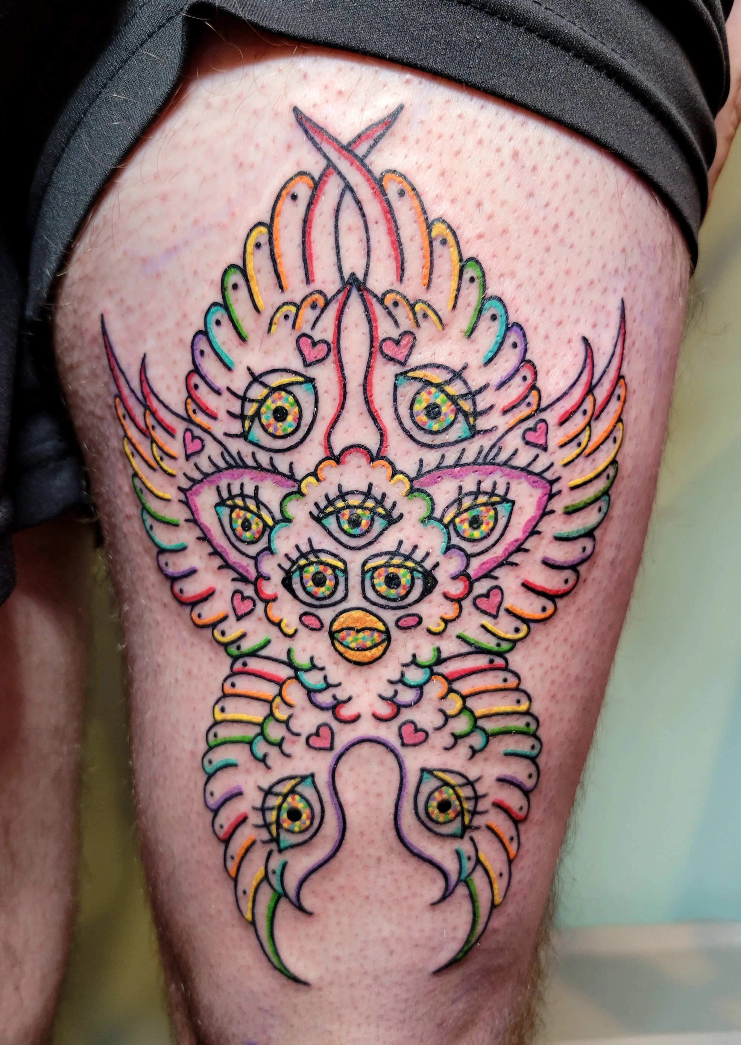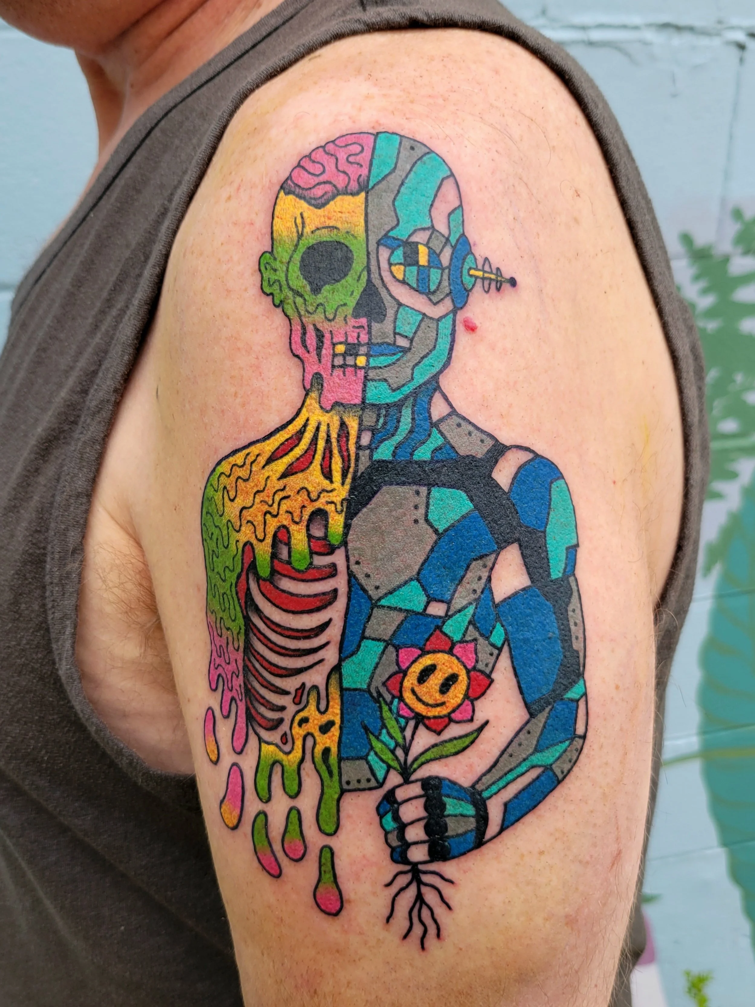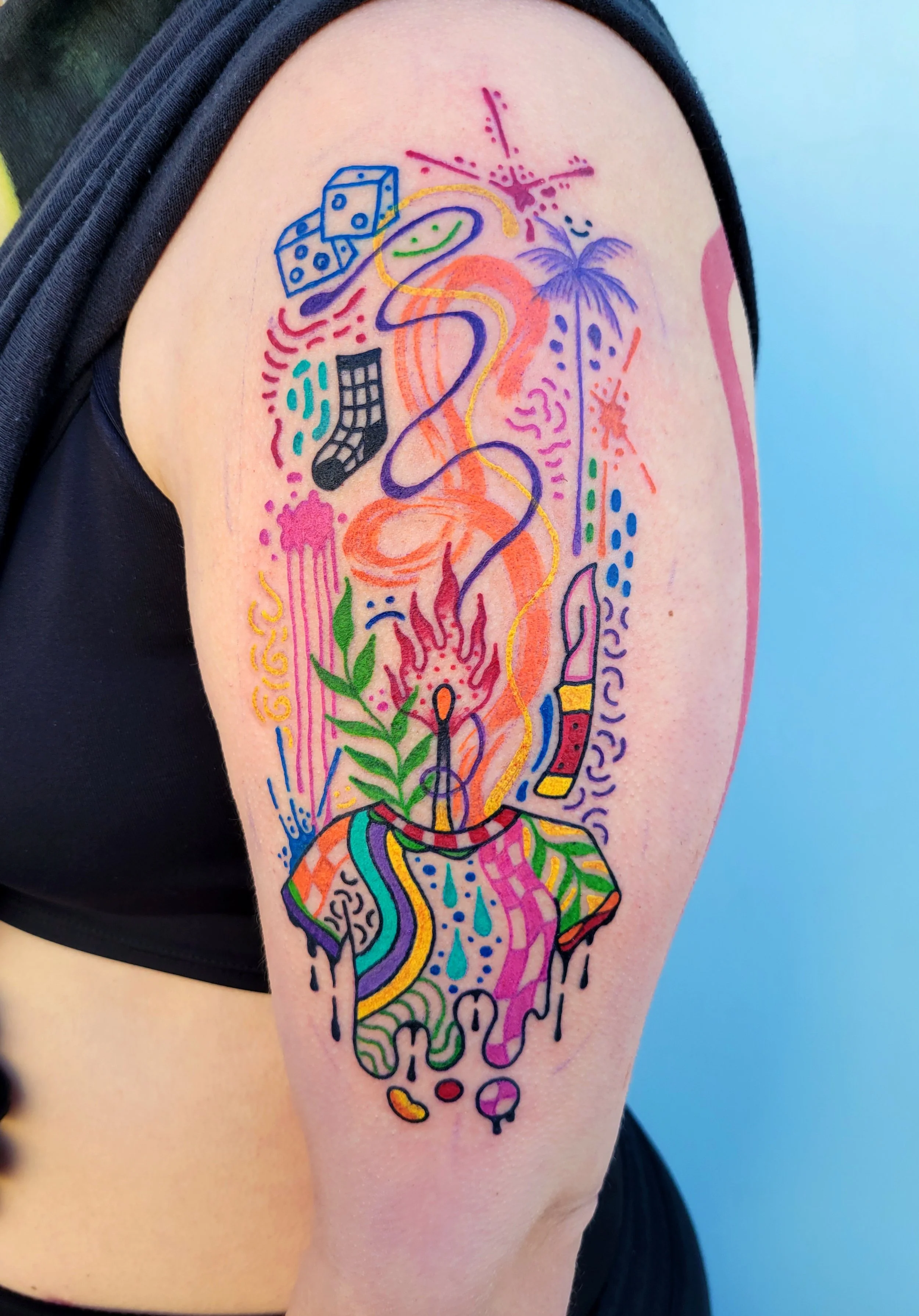 Cat grew up in North KCMO and have been tattooing since 2018. They love a variety of styles by are mostly focused on trippy, colorful imagery and heavy or fine-line blackwork. When they’re not tattooing you can find them traveling or playing magic the gathering with their partner.