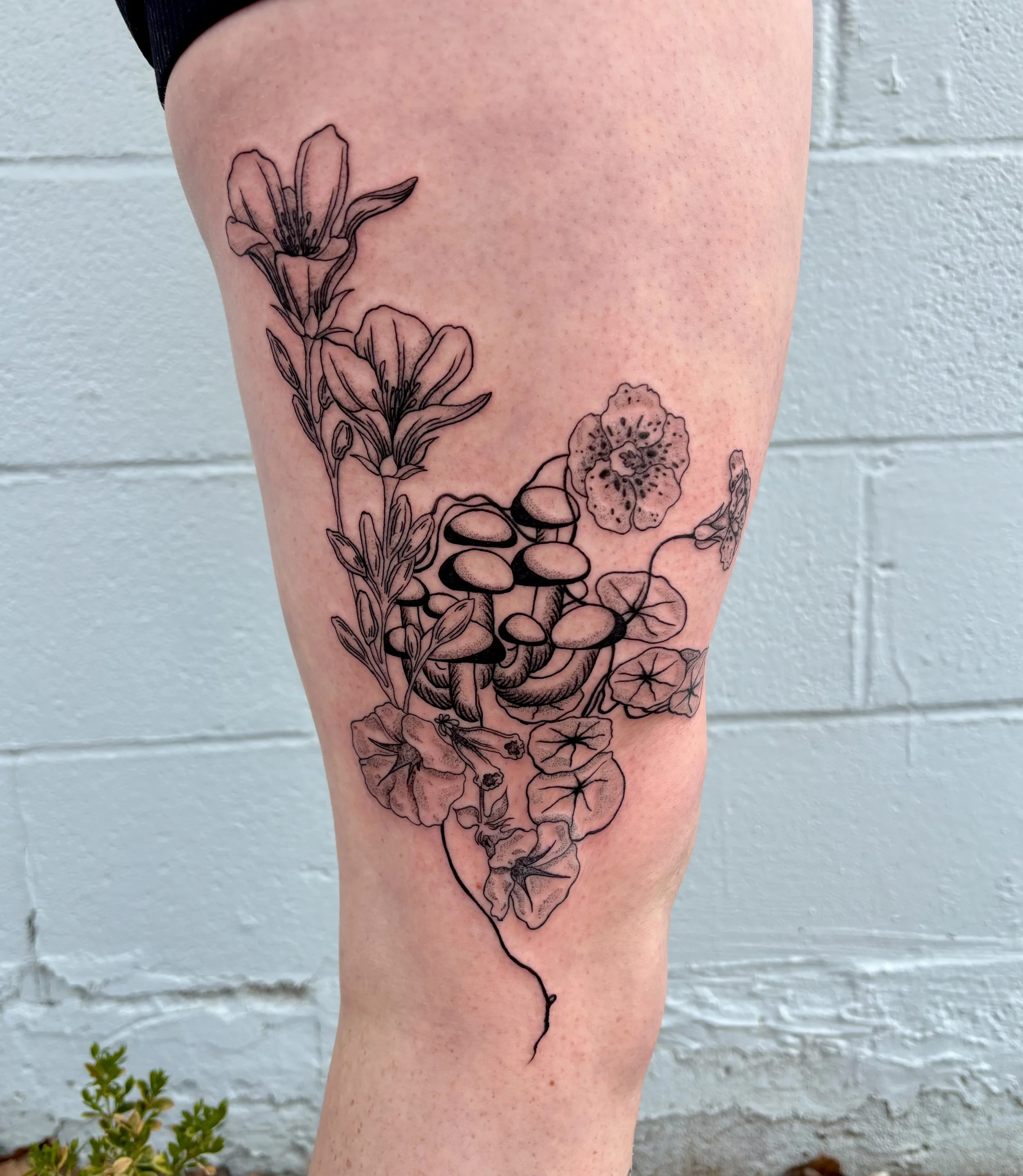 Ashley has been doin’ what she loves for the past two years! Some of her favorite subjects to tattoo are plants, tiger, birds, game/book characters, and pet portraits.